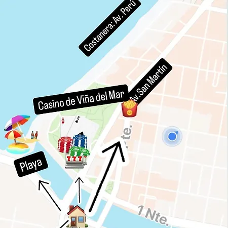 Indkvarteringen ligger 5 minutters gåtur fra Plaza Mexico. Gæster kan finde Vina del Mar Kasino i området. Gæsterne kan nyde europæiske snacks og måltider i El Austriaco placeret 400 meter væk. Det tager en 15-minutters køretur for at se El Arco Británico.